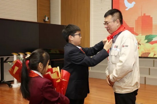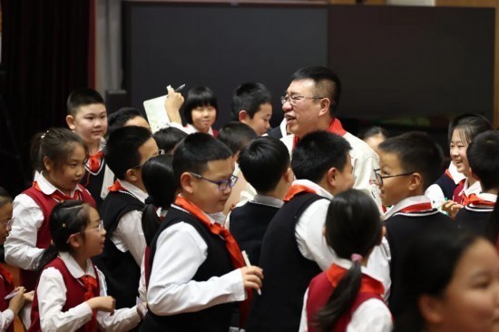 行径现场,孩子们为李万君献上鲜花、系上红围巾,东北师范大学附属小学还向他颁发了社会推行课程众人聘书。行径尾声,与会指导与学生代表共同开动了东北师大附小“学工匠精神 作念强国少年”主题西席行径。