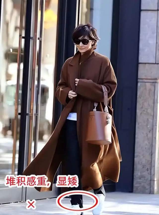 虽然驼色大衣外套很经典,如果这一身穿搭造型有堆积感重,你整个人自然显得矮,所以咱们还是懂得做“减法搭配”才行,你说是不是?