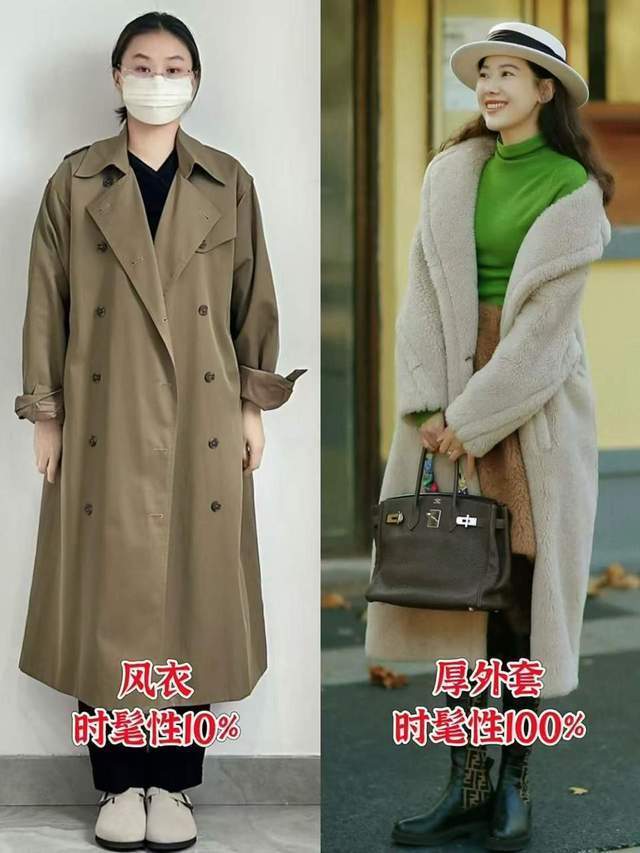 冬日穿大衣外套,可以用能提升腰线的X版型大衣,又能展现出小蛮腰;H版型大衣也不错,上身效果遮肉显瘦,让身材线条变得更加流畅。