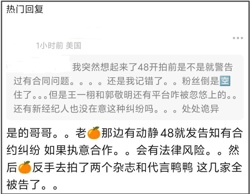 另外,网友还意志到,包括郭敬明在内,悉数找鞠婧祎拍戏的剧方,齐有可能和她一谈成为被告,担上法律风险,需要补偿丝芭传媒经济亏蚀。