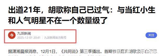 九派新闻2025-12-01《出说念21年,胡歌称我方已过气:与当红小生和东说念主气明星不在一个数目级了》