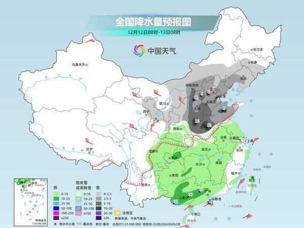 后天,内蒙古西部、东北地区中南部、甘肃中部、华北、黄淮、江汉西部等地部分地区有小到中雪或雨夹雪,其中,内蒙古中部、山西、河北中南部、辽宁中部、河南中北部等地局地大雪到暴雪。西南地区东部、江汉、江淮、江南、华南大部等地部分地区有小到中雨,其中,广西南部、广东西部等地部分地区有大雨。