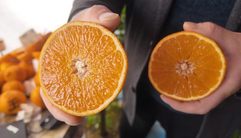 在包装车间,朱霞强顺手提起一个橙子轻轻一握,丰沛的汁水瞬息迸出。“本年时局好,加上农技东谈主员本事带领到位,橙子甜度超13度。果肉雅致多汁,像果冻相似,绝顶受宽贷。”他先容谈,预测本年产量可达40余万斤,品性创下连年最好。